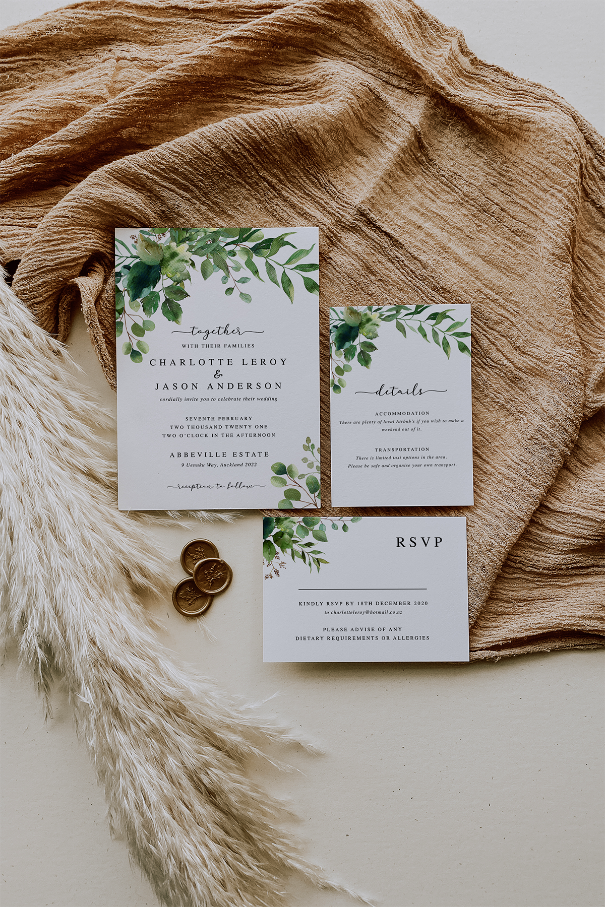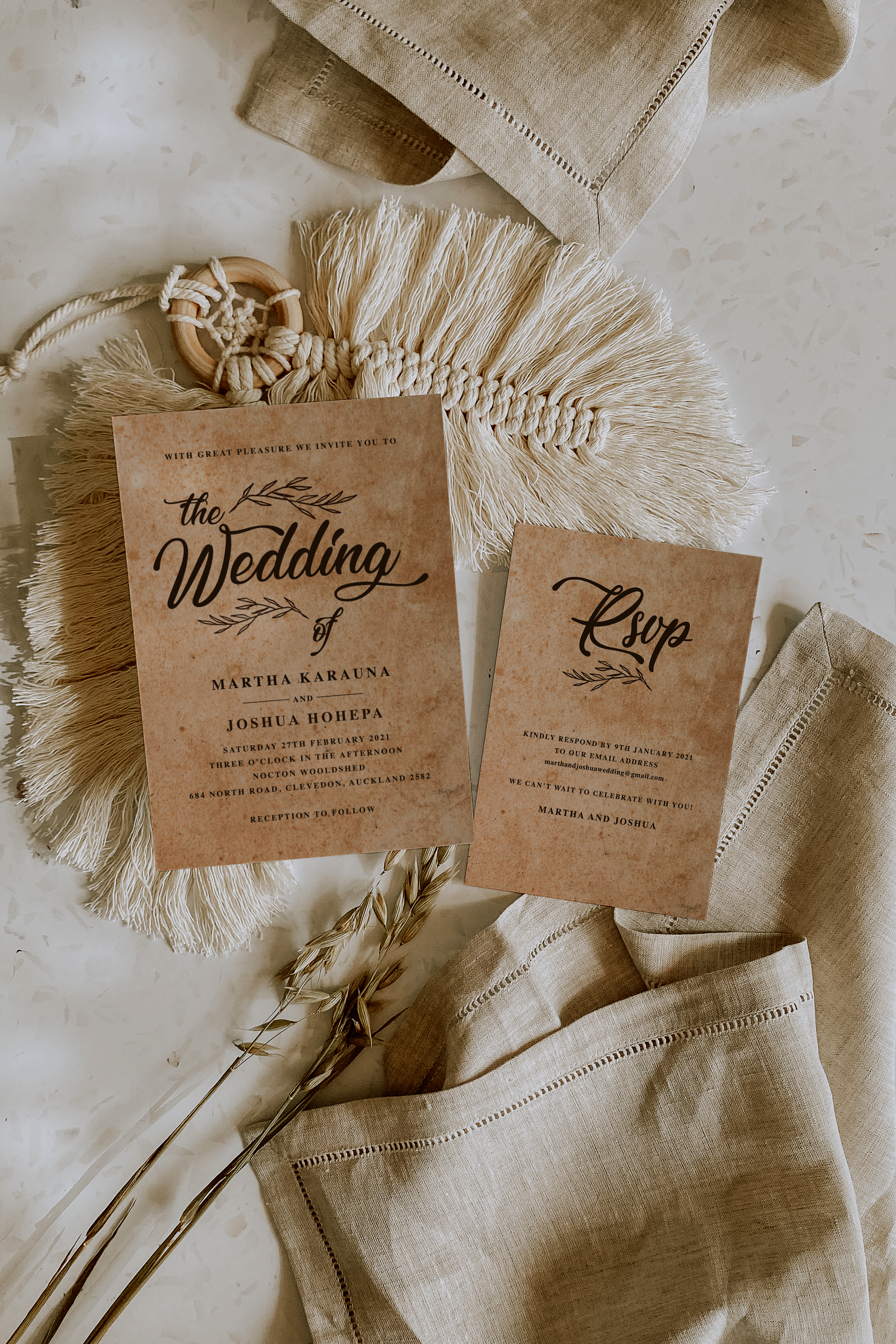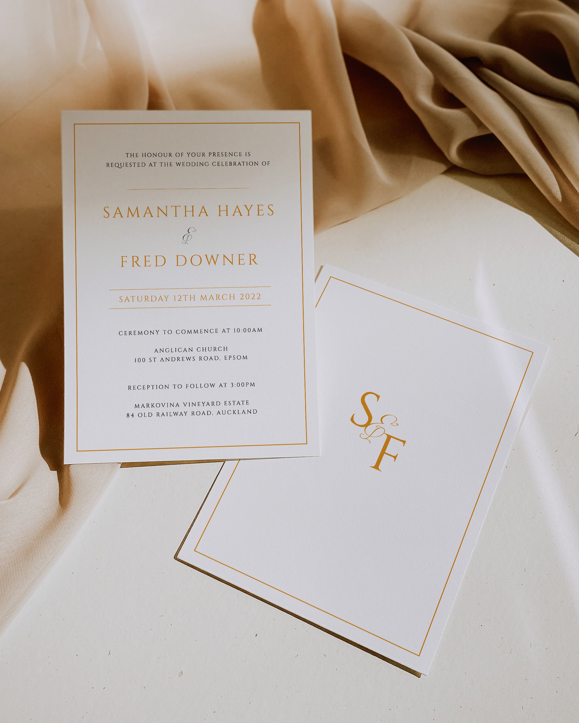 We work with New Zealand's leading specialists to achieve techniques such as foiling, letterpress or embossing on your wedding stationery pieces. So if you are feeling a little fancy, we have got you covered as the possibilities are endless!